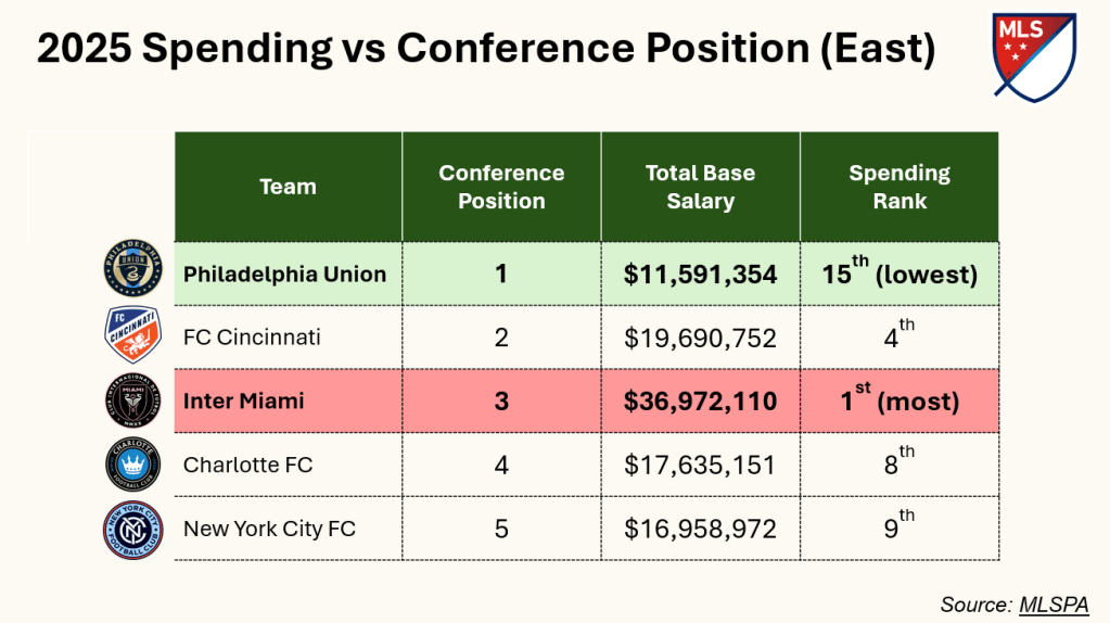 Think MLS teams need to spend to be successful? The Union might have something to say about that. Their Supporter’s Shield winning season also saw them be the team with the lowest salary total in 2025: #MLS #Data #Philadelphia #Union #DOOP